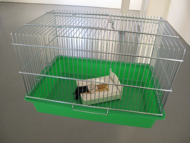 Marko Mäetamm representerade Estland i Venedig 2007 med EU-kritiserande lekparksinstallationer, blödande hus och en animation om en man som med yxa jagar en fullständigt odödlig familj. Mäetamms tema om kärnfamiljens utsatthet i dagens samhälle fortsätter i denna utställning, dock betydligt blygsammare. Det är frågan om hamsterburar i rad där olika spektakel i hem äger rum, allt från våld till självmord. De framstår som sidoeffekter av konsumtionshelvetet, som drabbat esterna möjligen hårdare än andra. Jag blir lite besviken när jag ser dessa, hans verk tycktes också fungera betydligt bättre i den helhetsinstallation jag såg i Venedig.