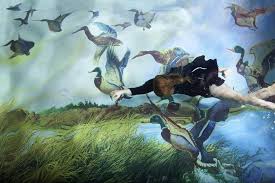 Varje verk bär på en gäckande gåta i illusoriska landskap. Hon påvisar ett leverne i någotslags gränstillstånd mellan sinnlig lek och sanning. Det ligger en tidlös känsla över bilderna, ett slags Twin Peaks-surrealism. Vatten är ett återkommande element i färgfotografierna i utställningen. I Majuris undervattensvärldar utforskas systerskap, vänskap och erotisk kärlek mellan flickor. Undervattensvärlden är mardrömsaktig, tryckande men också drömlik och eterisk. Det ser ut som om figurerna skulle både flyga och dyka, vatten och luft blir ett. Vattnet förändrar ansikten och kroppar, i vissa bilder är vattnet klart och i andra grumligt. Konstnären klär sanningen i falska, fiktiva kläder i och med att fotografierna är tekniskt inte manipulerade utan konstnären har uttryckligen byggt upp kulisser. Bakgrunden kan formas till exempel av ett lopptorgsfynd i form av ett lock från en chokladask, som avbildar en flock uppflygande änder och som Majuri förstorat upp till en jättelik vaxduk som hon täckt en bassängbotten med. Dansen finns starkt med i konstnärens liv och fotografierna har också en tendens att betona den fysiska upplevelsen och rörelsen.