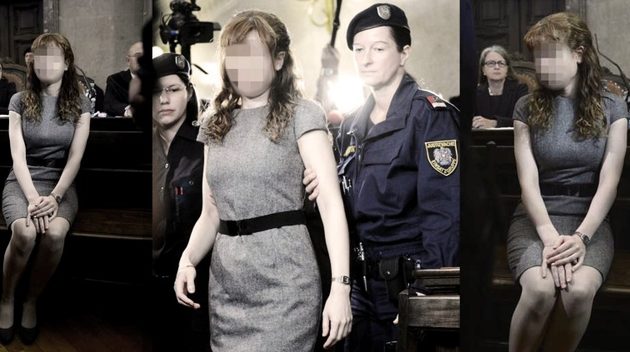Bredvid dessa mera gripbara husdokumentationer hänger en bild av en kvinna i en rättsprocess. Bilden formar en triptyk. Kvinnan iklädd grå dräkt har inget ansikte och leds av en kvinnlig polis. Det är som om man kan återupptäcka detaljer från utställningen i denna triptyk: det gråa, tomheten, presentationen i sig och trovärdighetsfrågan.