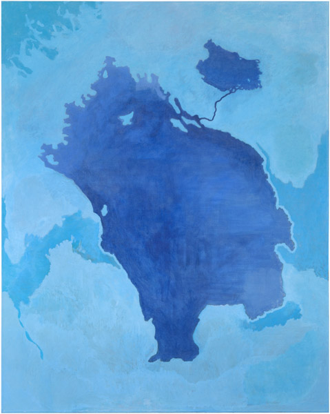 Det är ofta frågan om sönderrivna blomstjälkar som sedan blivit omplåstrade. Med finns även trasiga landskap och leriga, tomma hål. Jag tycker hon lyckas skildra detta utan att det förefaller sentimentalt. Som betraktare vrider och vänder man sig framför glaslådorna för att få den så att säga hel. Men det lyckas inte. Blomstammen kvarstår som styckad och landskapen är fulla med skavanker och hål. Först vid tillräckligt långt avstånd från bilden förefaller den helare och ger ett annat, nytt intryck – allt tar sin tid och plats. I större målningar handskas hon med olika blåa valörer. En fågel flyger fritt i skyn – så lätt det verkar, himlen är öppen och ägs av ingen. Ladogasjön får agera symbol för mera smärtfyllda minnen i ett känslofyllt kartografiskt förhållningssätt, ett så kallat medvetandets geografi. I den stora blåa målningen vid namn Fostervatten är en större sjö förenad med en mindre med något som ser ut som en navelsträng. Mikro- och makrokosmos blandas och betraktaren förvandlas plötsligt till en fågel i galleriet som får ta del av allt i flygbild.