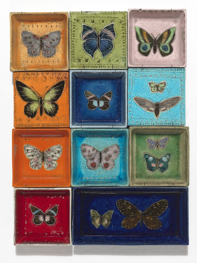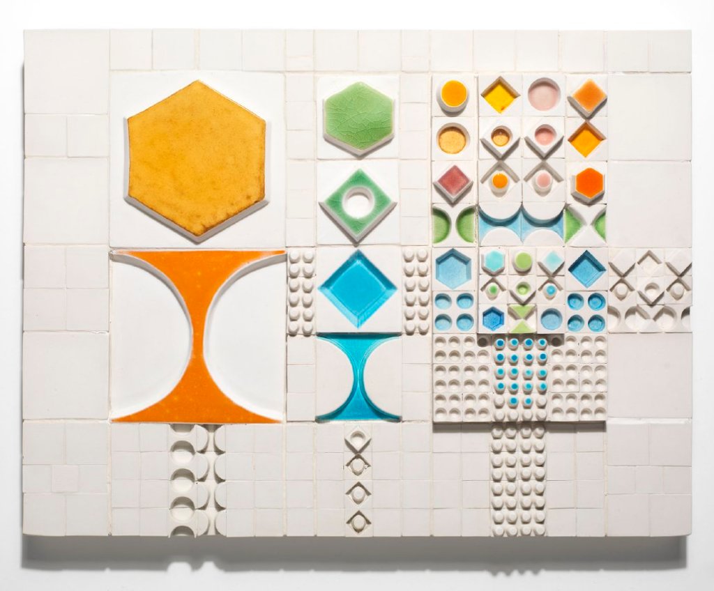 – Rut Bryk har på senare år blivit mest omtalad för sina stora monokroma reliefkonstruktioner, så pass att man nästan glömt hennes tidiga produktion med en färgstark pittoresk keramik, berättar Harri Kalha.