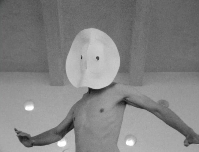 Den stora videoprojektionen på cirka en kvart går helt i svartvitt, med minimalistiska och intensiva scener. Det är frågan om ett surrealistiskt, freudianskt laddat bildspråk. Det hela börjar med Olympiastadions utsida. Barfota träder en vitklädd figur in i det enorma funkisrummet, som för tillfället står under renovering. Det känns i hela kroppen framför de branta läktarna med 40 000 slitna sittplatser och den kusliga ödsligheten. Mina tankar går snabbt till allt det som utspelats på denna funktionalistiska scen i nästan åttio år: sorlet, ropen, hejaklackarna, farten – vad finns kvar?