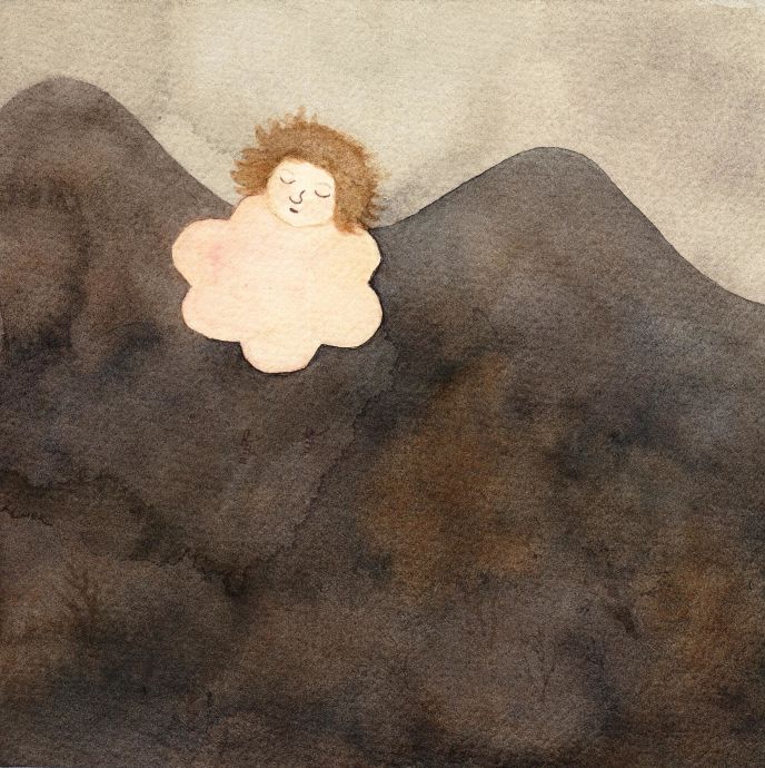 Malin Ahlsveds akvareller skildrar en bergochdalbana bland rosa moln, mörka skogar och brinnande buskar. Den lilla människan tycks ständigt kastas mellan drömmar, hopp, besvikelser och svårigheter.