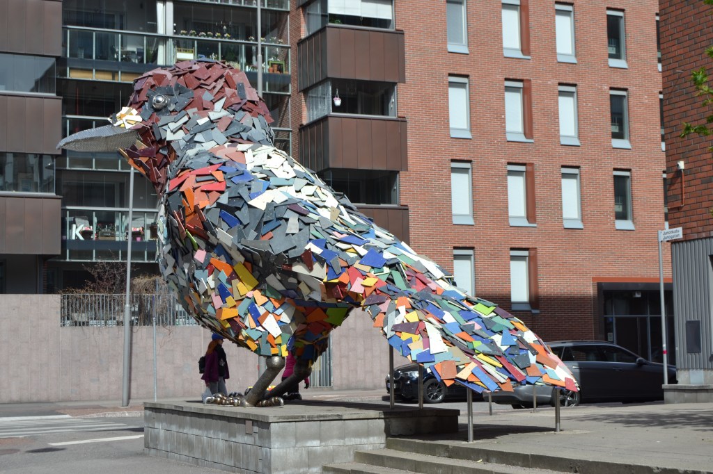 Fastän den förefaller accepterad i sin omgivning kan man ändå fundera över om den bjärta skulpturen plötsligt dumpit ner från himlen. Har den alls något med Fiskehamnen att göra?