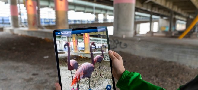 Offentlig konst Pasi Rauhala: Flamigos, 2019. Capellas allé, Fiskehamnen. Digitala världar är i dag lika stora delar av våra offentliga rum som gator och torg. Men hur ter sig ett temporärt konstverk på internet jämfört med ett bronsmonument? Pasi Rauhalas digitala installation Flamigos i Fiskehamnen ses delvis via en app och vill väcka Högholmens flamingoflock … Continue reading Pasi Rauhala: Konstnärlig hyllning till döda flamingor